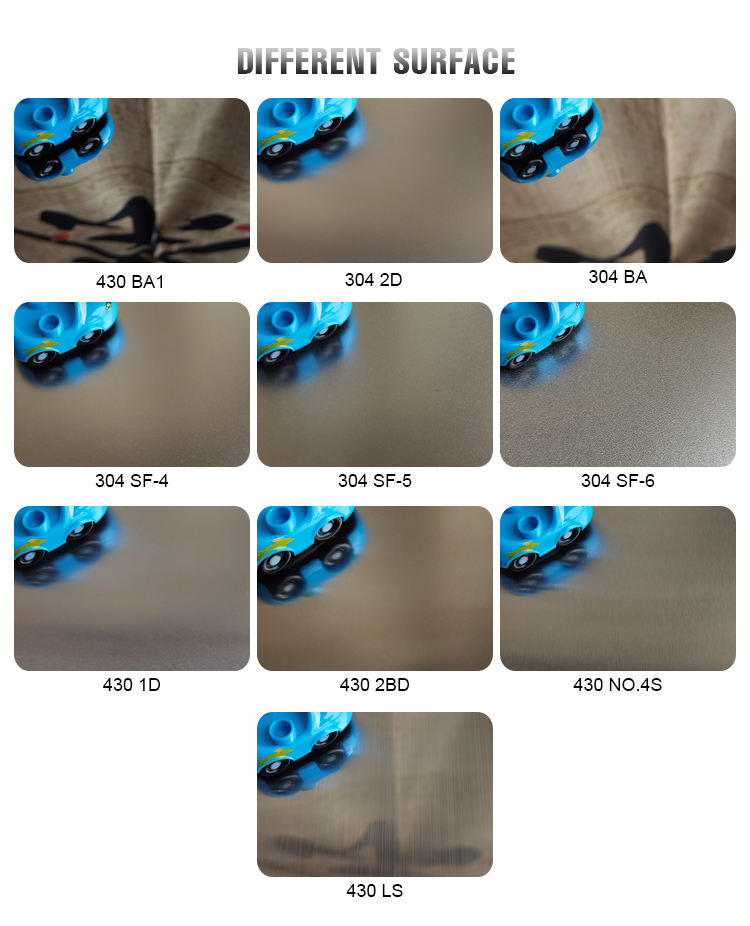 Surface : 2B, BA, NO.1, NO.4, 8K, HL, Embossing, Satin, Mirror, ect